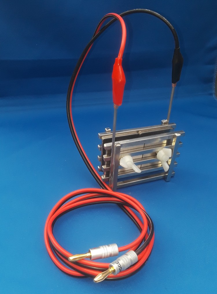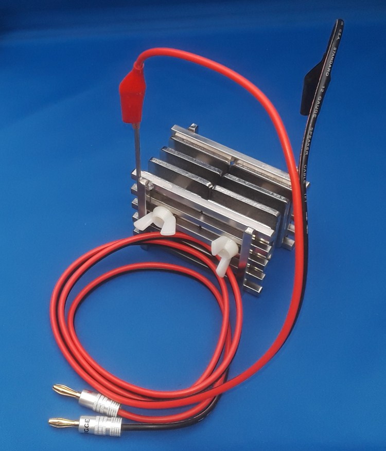HEAVY DUTY ARRAY WITH WIRES – Our new 3rd generation design! Square plates on the interior, where the reaction occurs, resulting in a 30% increase in surface area and more energy input (amps) through the system! In addition, these square plates are twice as thick as our previous plates, and 2-3 times as thick as our main competitor’s plates, resulting in a doubling or tripling of the expected life of the array assembly! Comes with our standard wire set including banana plugs, custom alligator clips, and 5 feet in length. $124.95 + $9.95 Shipping – Buy Now